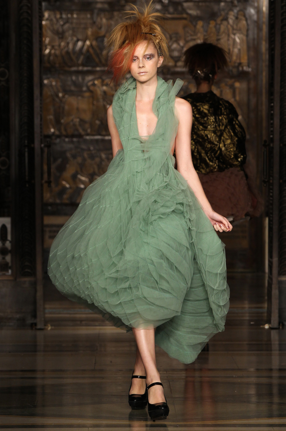 Her signature sheer mesh designs were still prominant but this season came in soft pinks and light greens as well as the trademark black and white.